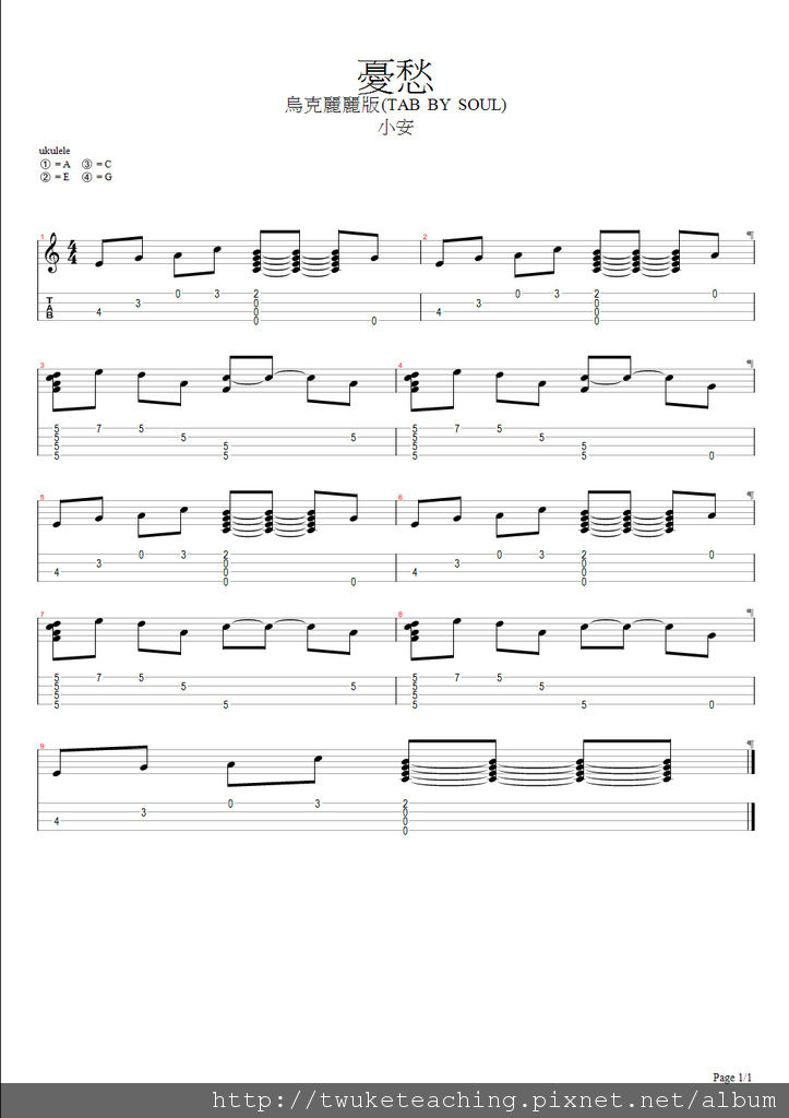 烏克麗麗樂譜|憂愁|小安|烏克麗麗版